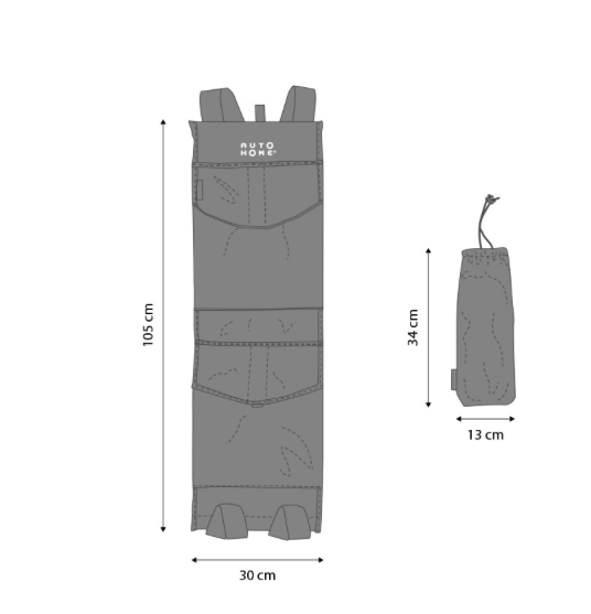Tasche kann mit Klettverschluss verschlossen werden. Sie ist wasserdicht und einfach anzubringen. Schuhe, Campingzubehör oder persönliche Gegenstände können hier verstaut werden.