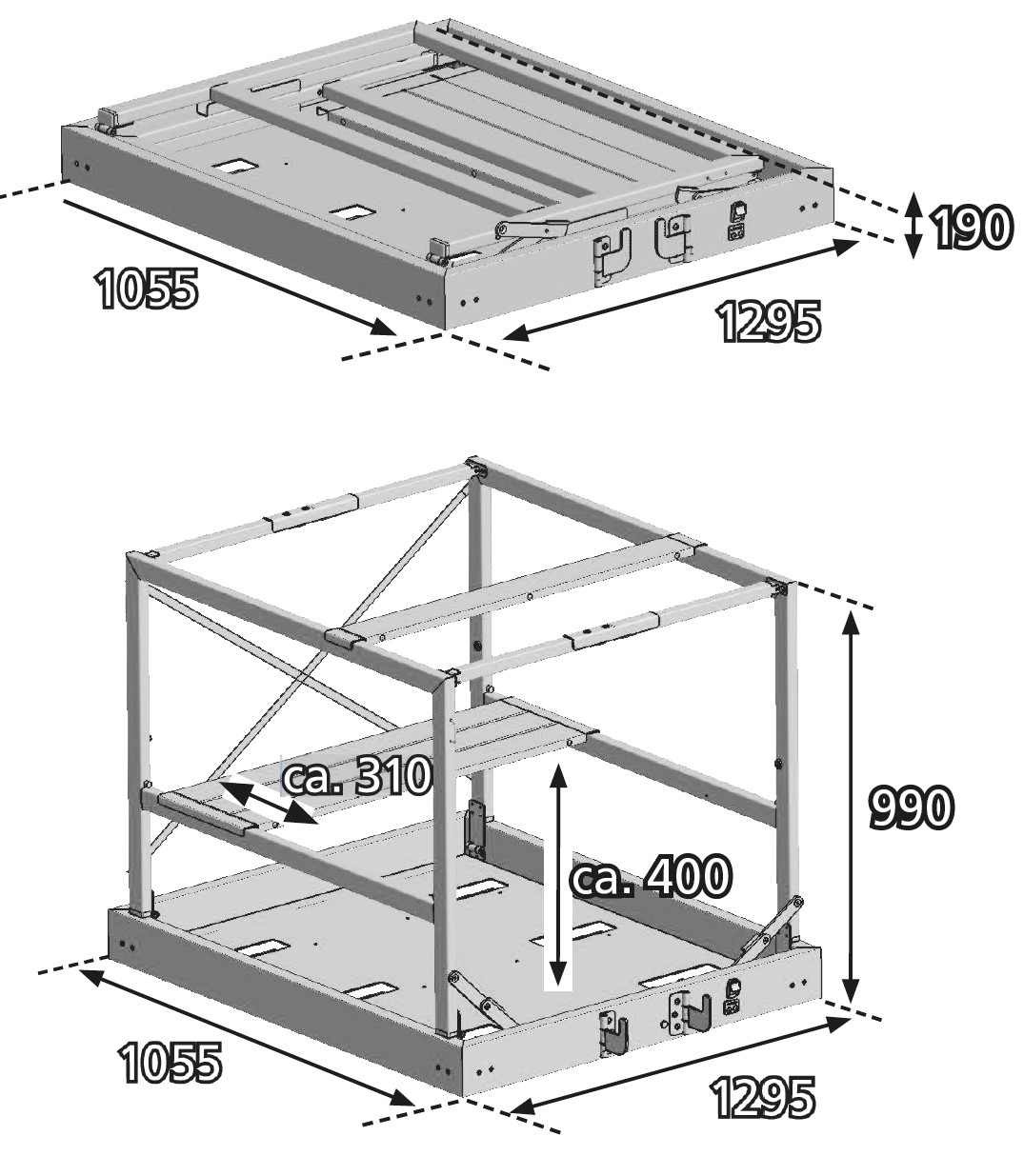 Geschlossen: 1295 x 1055 x 190 mm